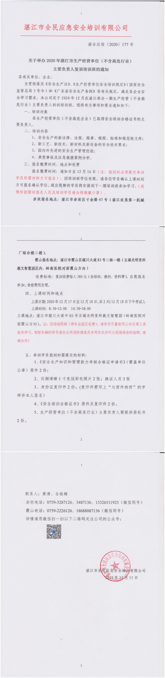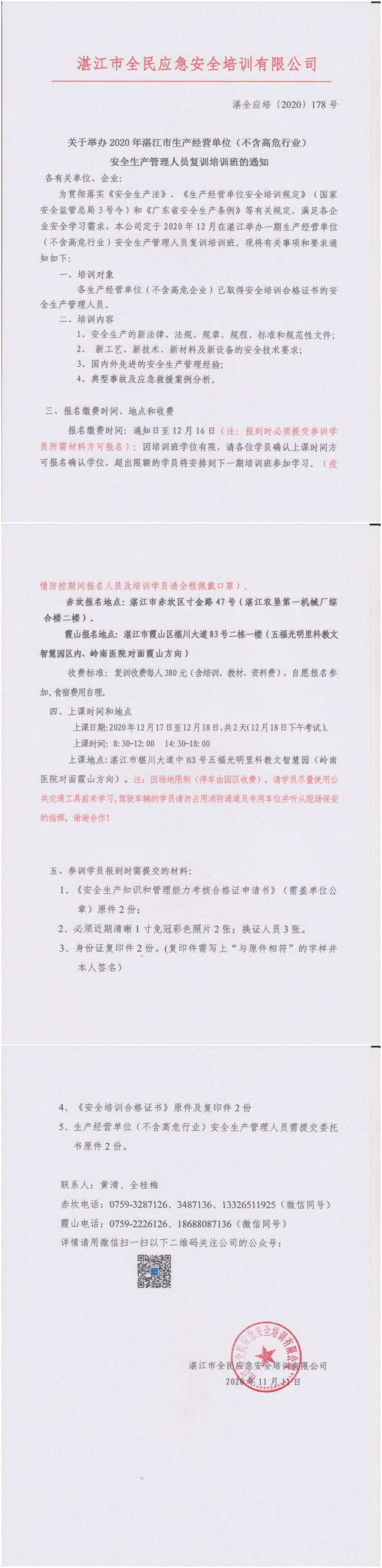 2020年12月17日-18日生产经营单位(不含高危行业)复训班通知