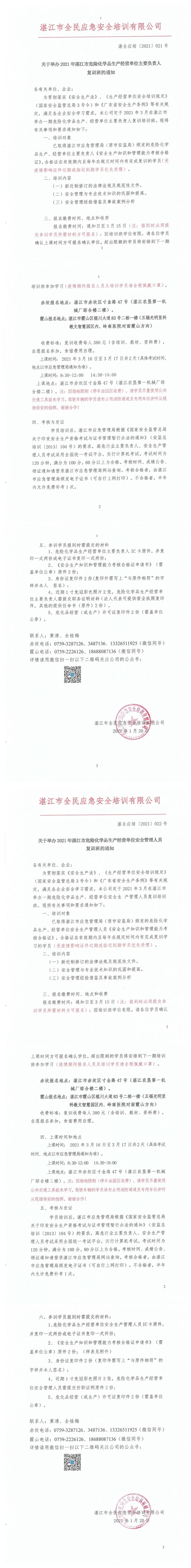 2021年3月16日-3月17日危险化学品复训通知