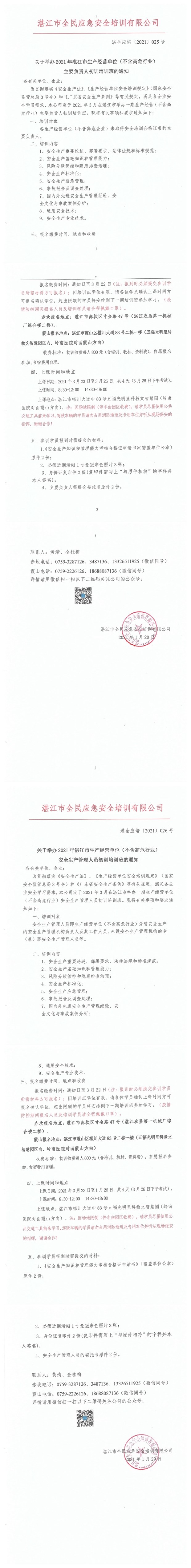 2021年3月23日-3月26日生产经营单位(不含高危行业)初训班通知