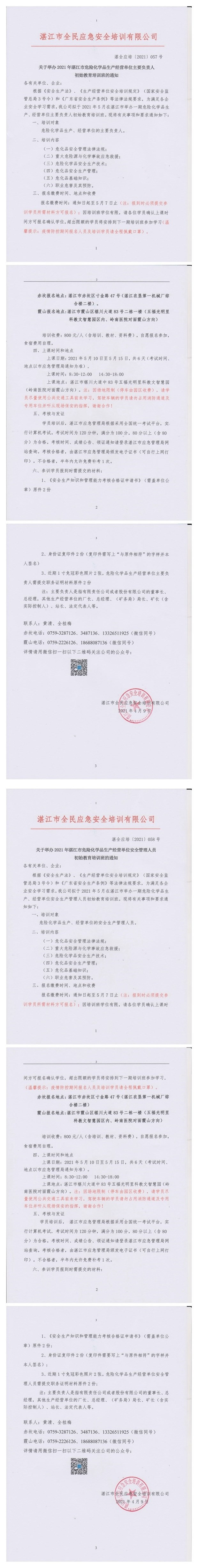 2021年5月10日-5月15日危险化学品生产经营单位主要负责人及安全管理人员初始教育培训班通知