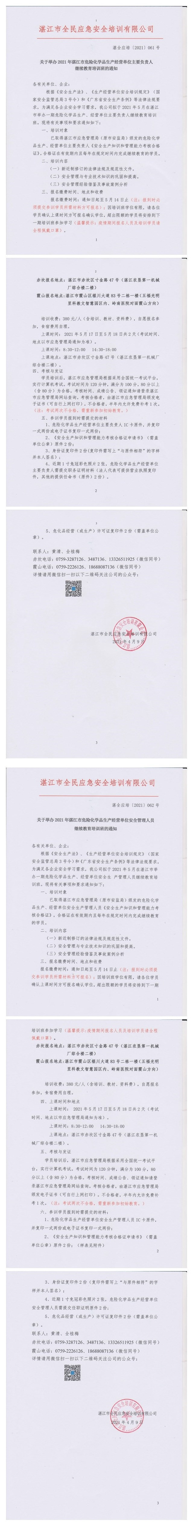 2021年5月17日-5月18日危险化学品生产经营单位主要负责人及安全管理人员继续教育培训班通知