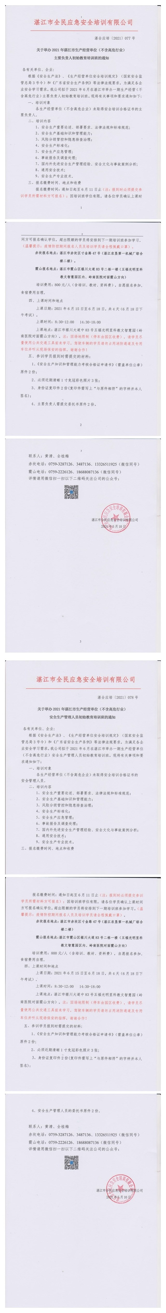 2021年6月15日-6月18日生产经营单位(不含高危行业)主要负责人及安全管理人员初始教育培训班通知