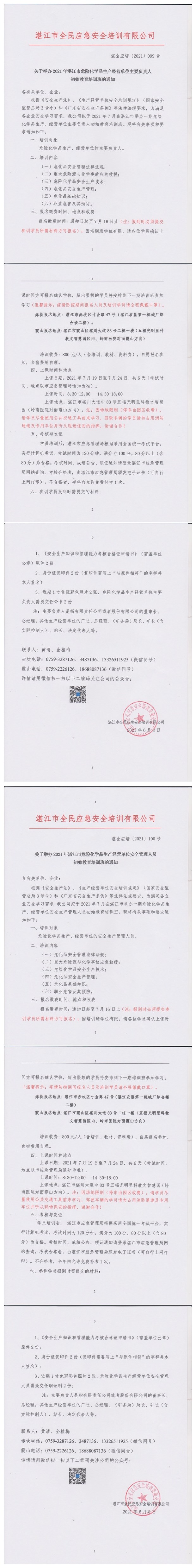 2021年7月19日-7月24日危险化学品生产经营单位主要负责人及安全管理人员初始教育培训班通知