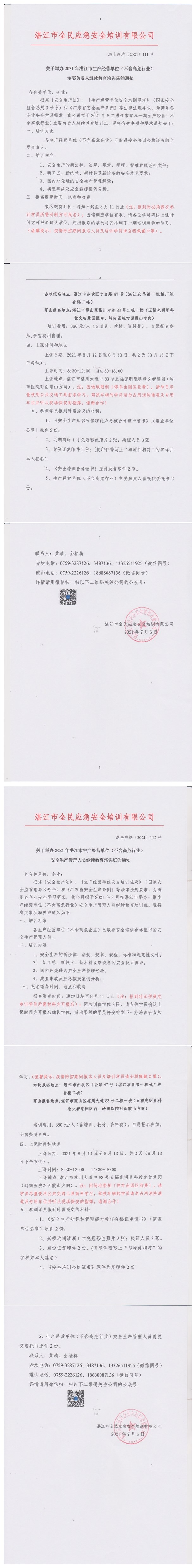 2021年8月12日-8月13日一般生产、经营单位主要负责人及安全管理人员复训班通知
