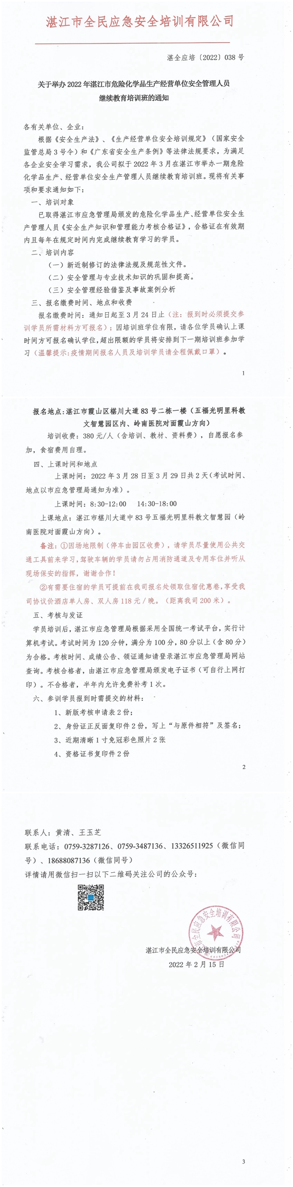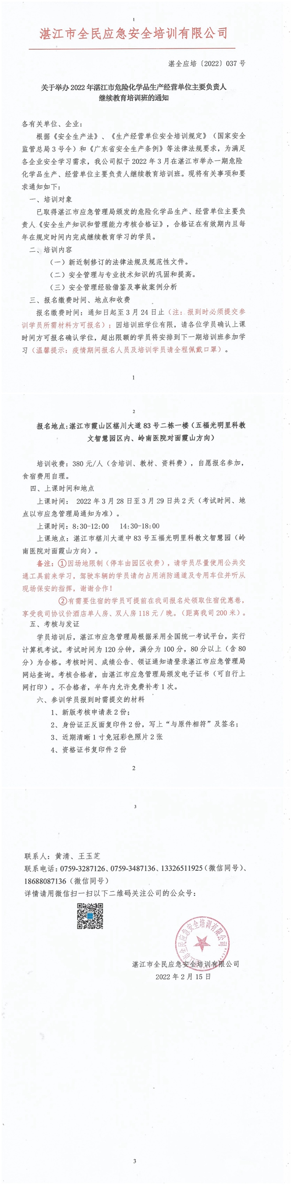 2022年3月28日-3月29日危险化学品生产经营单位主要负责人及安全管理员继续教育培训班通知