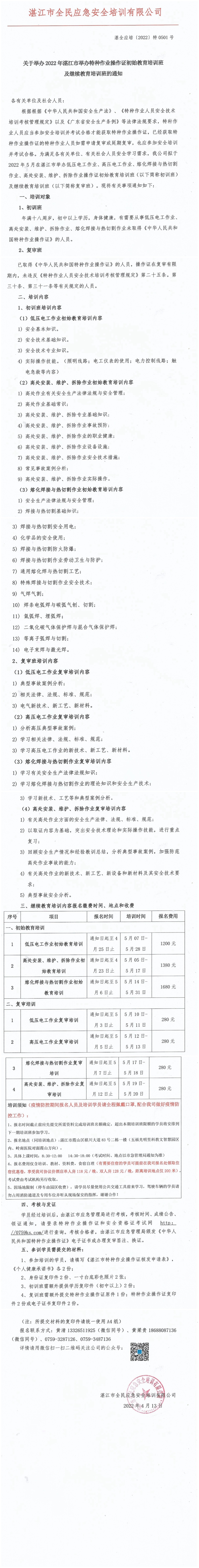 2022年5月7日-5月31日低压电工、高压电工、熔化焊接与热切割作业、高处作业初始教育培训班及继续教育培训班的通知