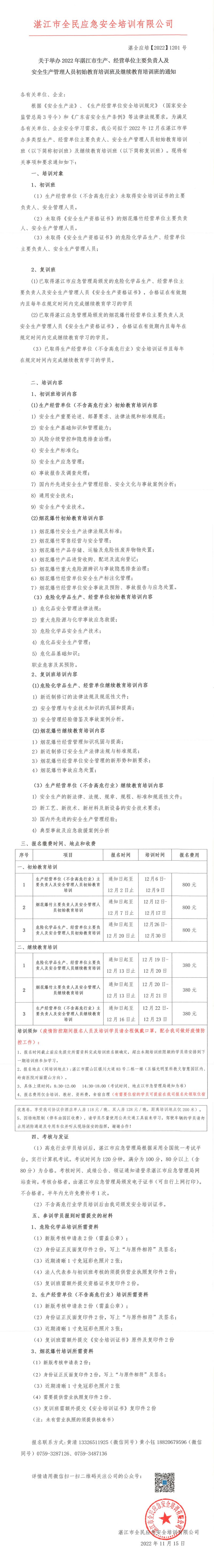2022年12月湛江市生产、经营单位主要负责人及安全生产管理人员初始教育培训班及继续教育培训班的通知