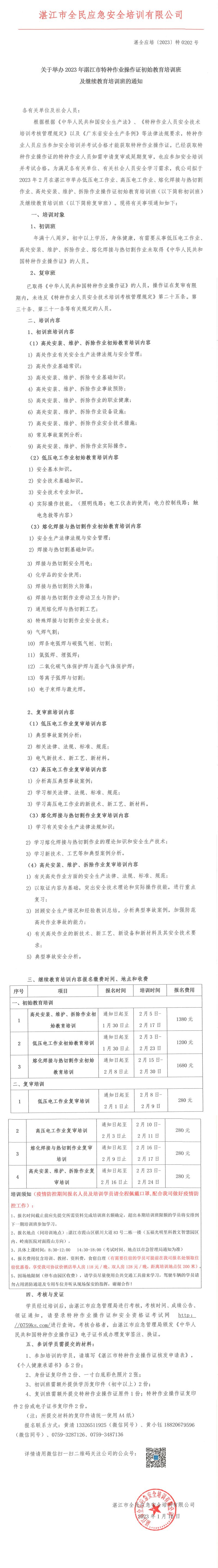 2023年2月低压电工、高压电工、熔化焊接与热切割作业、高处作业初始教育培训班及继续教育培训班的通知