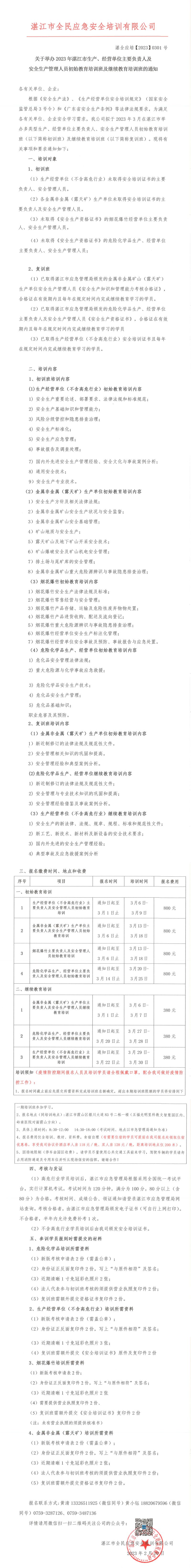 2023年3月湛江市生产、经营单位主要负责人及安全生产管理人员初始教育培训班及继续教育培训班的通知