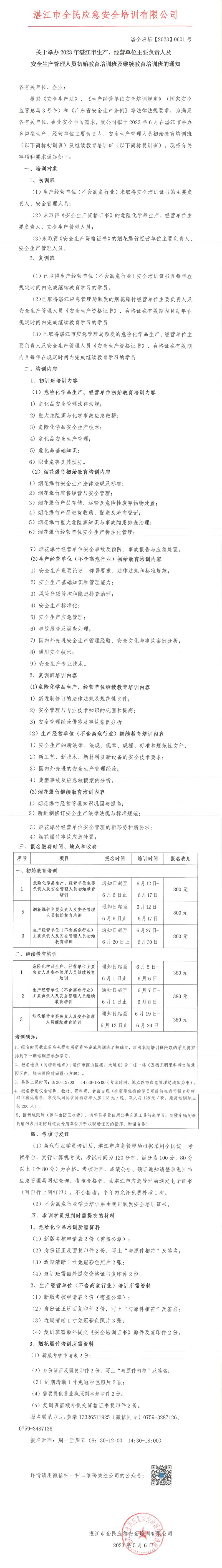 2023年6月湛江市生产、经营单位主要负责人及安全生产管理人员初始教育培训班及继续教育培训班的通知
