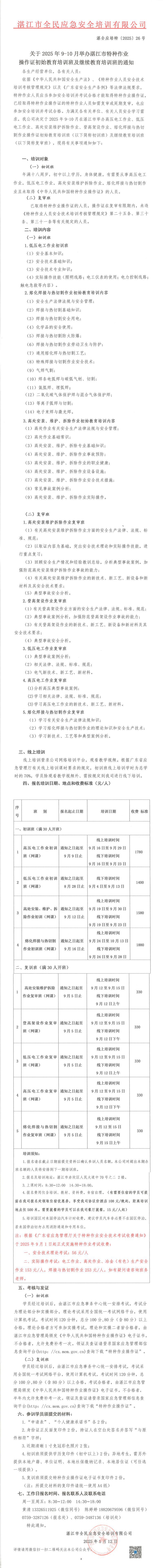 2025年9-10月高低压电工作业、高处安装维护拆除作业、登高架设作业、熔化焊接与热切割作业初始教育培训班及继续教育培训班的通知