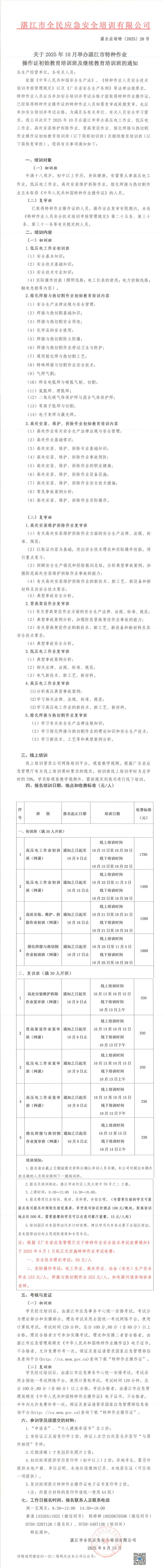 2025年10月高低压电工作业、高处安装维护拆除作业、登高架设作业、熔化焊接与热切割作业初始教育培训班及继续教育培训班的通知