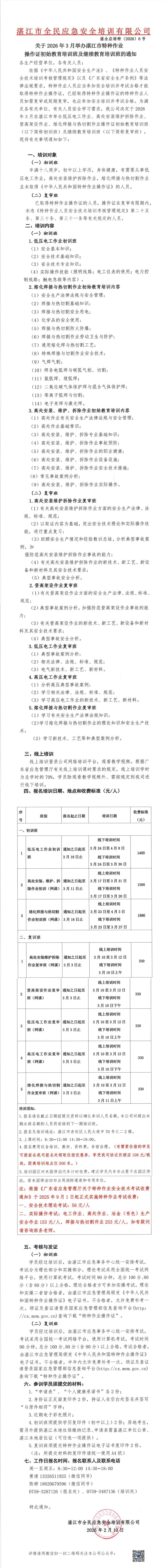 2026年3月高低压电工作业、高处安装维护拆除作业、登高架设作业、熔化焊接与热切割作业初始教育培训班及继续教育培训班的通知