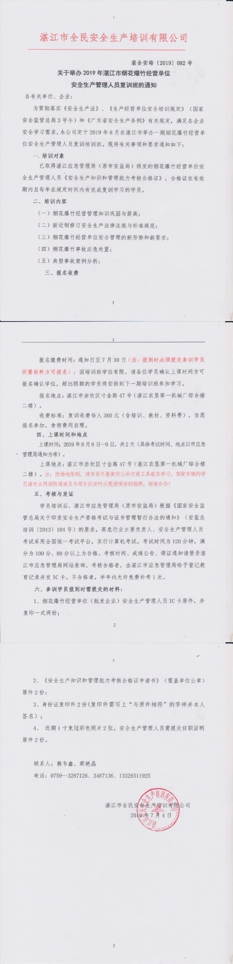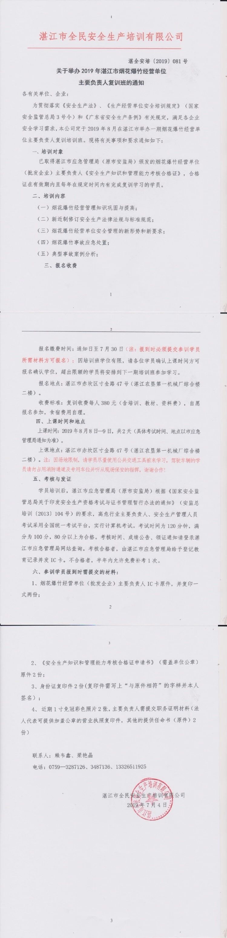 2019年8月8日-9日烟花爆竹复训通知
