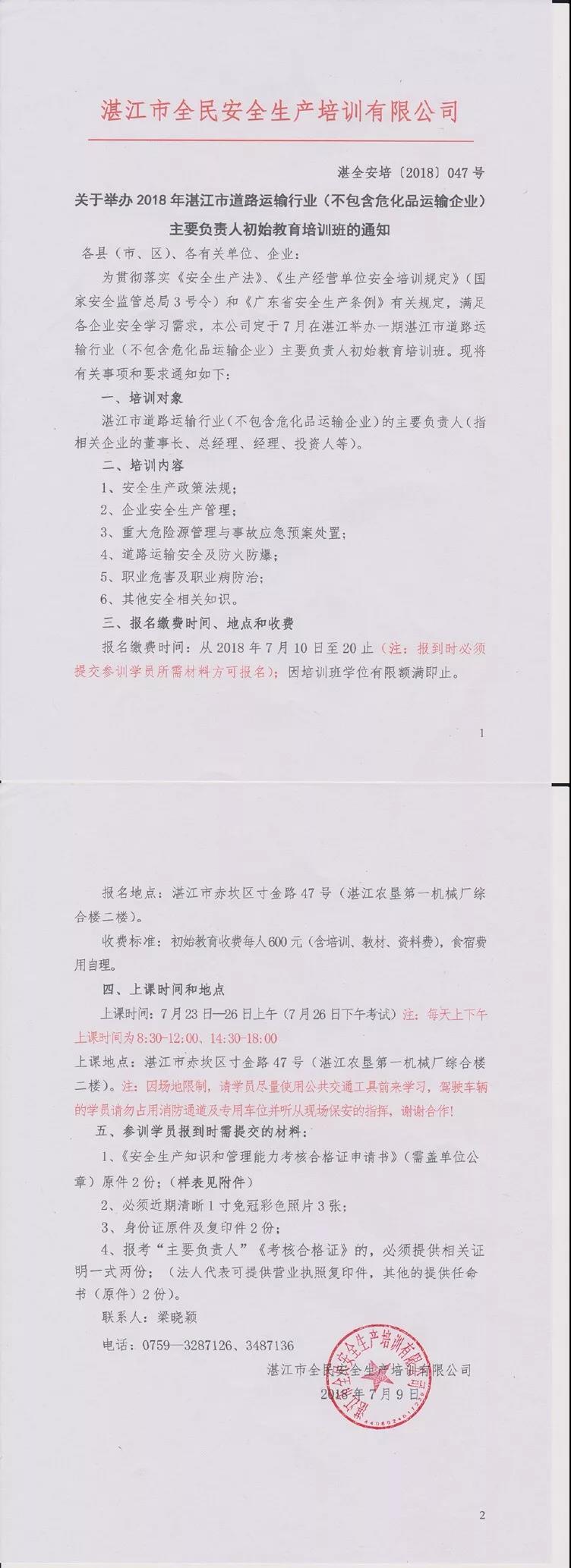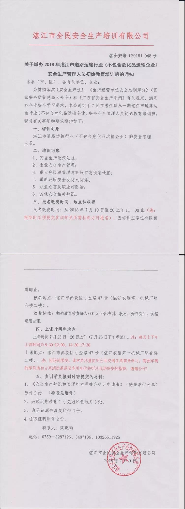 7月23-26日道路运输(不含高危行业)初始教育培训通知
