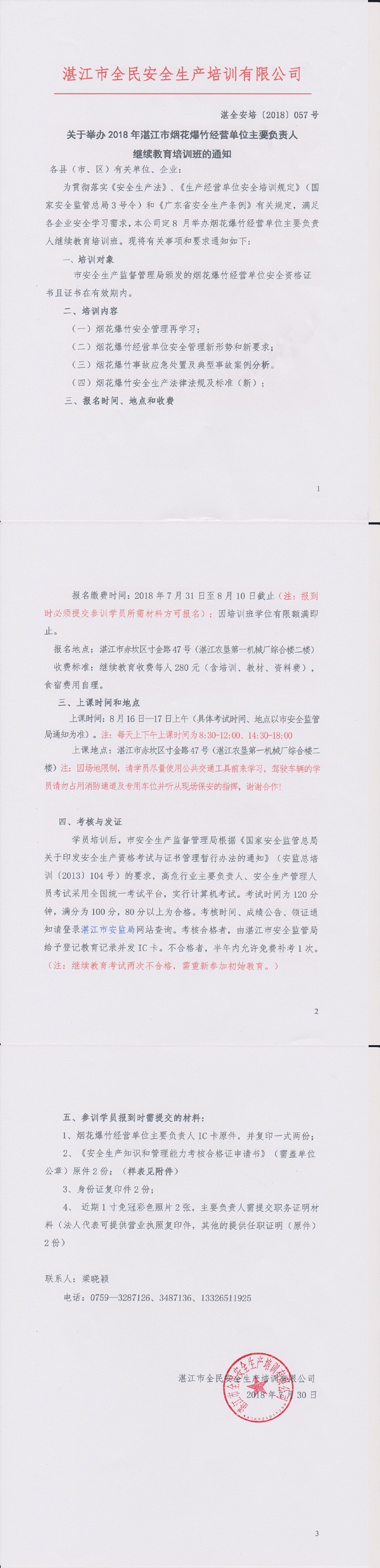 8月16-17日烟花爆竹经营单位继续教育通知