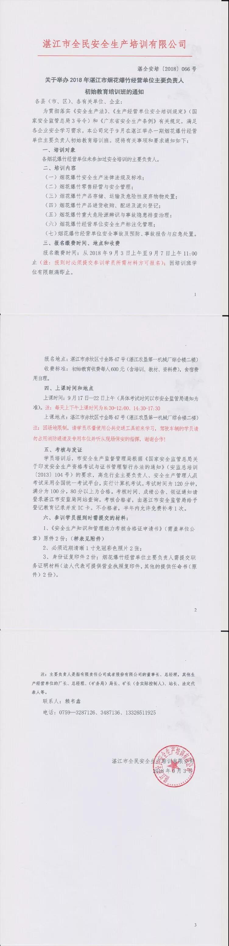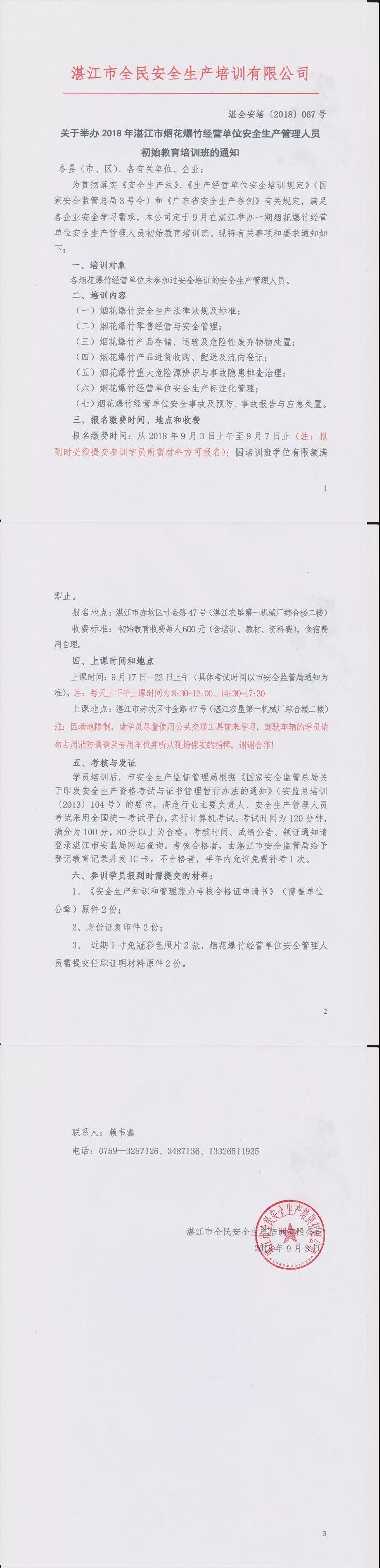 2018年9月17-22日烟花爆竹经营单位初始教育通知