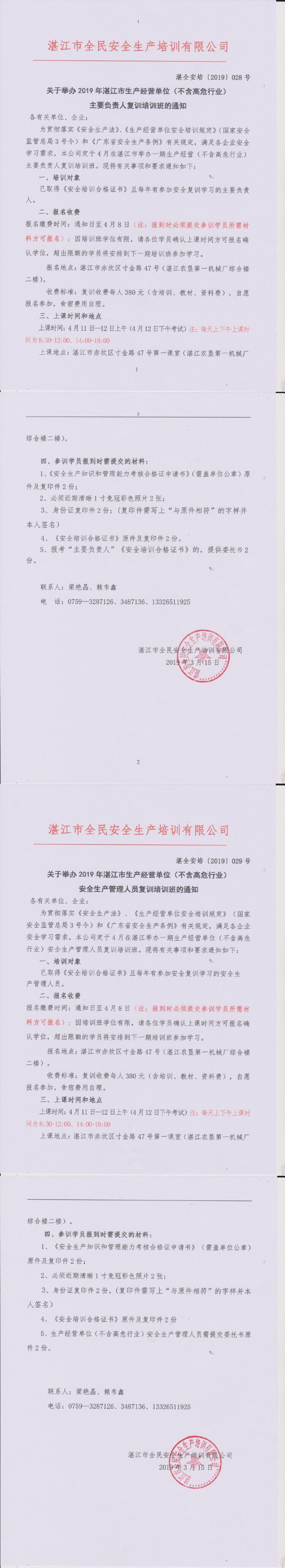 2019年4月11-12日生产经营单位(不含高危行业)复训培训通知