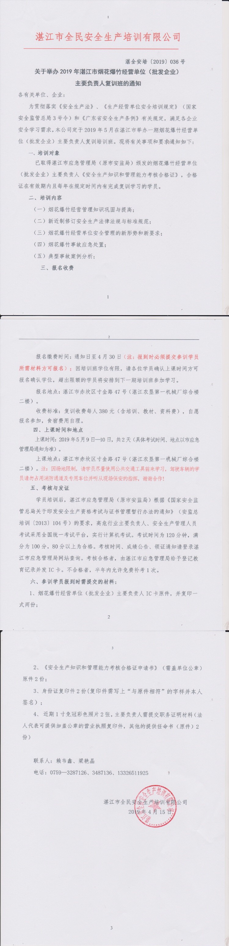 2019年5月9日-10日烟花爆竹经营单位(批发企业)复训通知